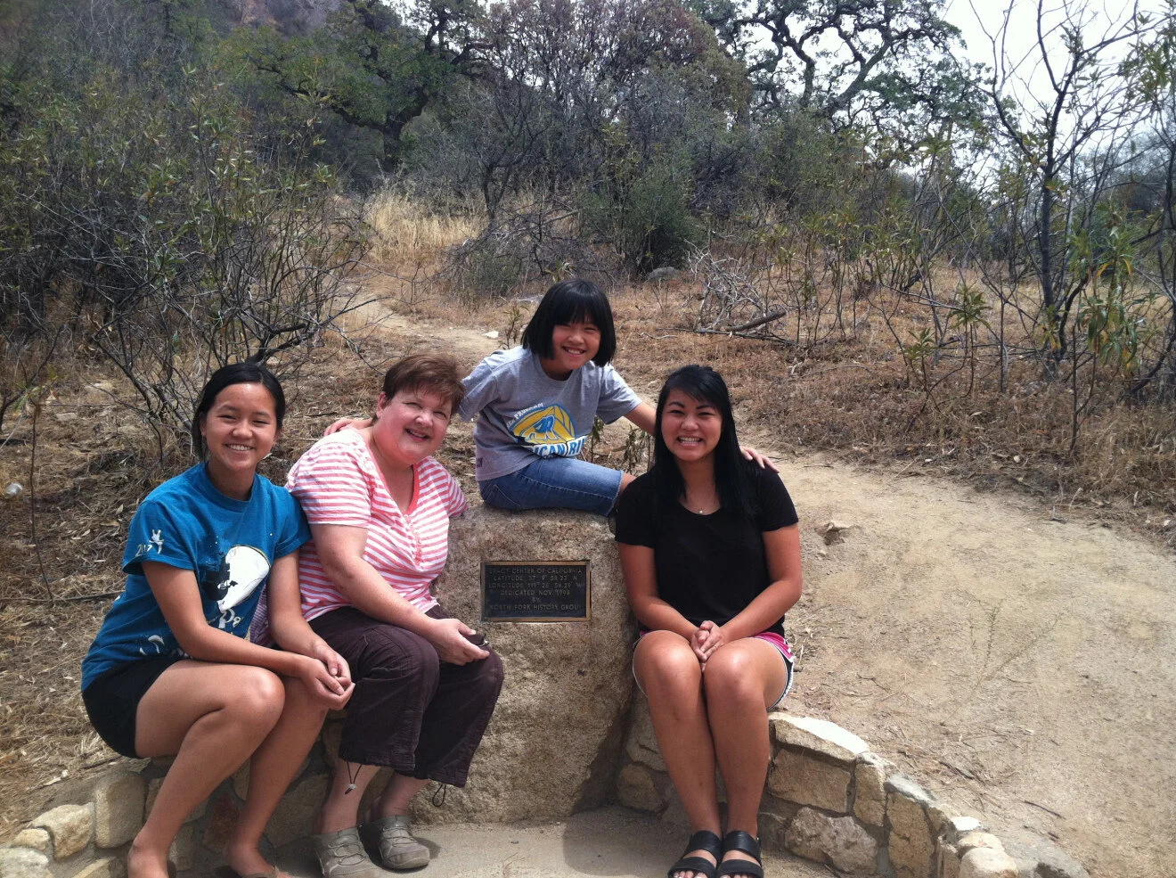 we found the exact center of california, i repeat we found the exact center of california! after we visited yosemite, we drove around the area (bass lake, resigner lake, lakes, mountains and more lakes) and for some reason we ended up driving down this sketchy unpaved and probably not the safest road. my family has a tendency to take the road less traveled, but hey, that’s why i love them. there were signs that said we would end up at a lake in 6 miles but honestly, water was no where in sight. trying to turn around on a narrow road in a honda odyssey is not easy so we had to keep going straight (i like playing the straight game!). there were no signs warning us but all of the sudden we see a plaque that says:
