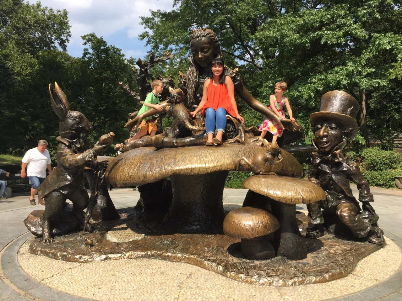 after the met we walked through central park and practically melted. it was so dang hot and conveniently, bailey and i were both wearing pants. we were able to walk around and find the alice in wonderland statue by the little boats. that was an awesome statue for kids (and adults!) to climb up and down. central park is so fascinating..you never get bored of people watching and lying in the grass in the shade. i see why people fall in love. we saw the boathouse and fountain where 27 dresses, one of my personal favorite movies was filmed.